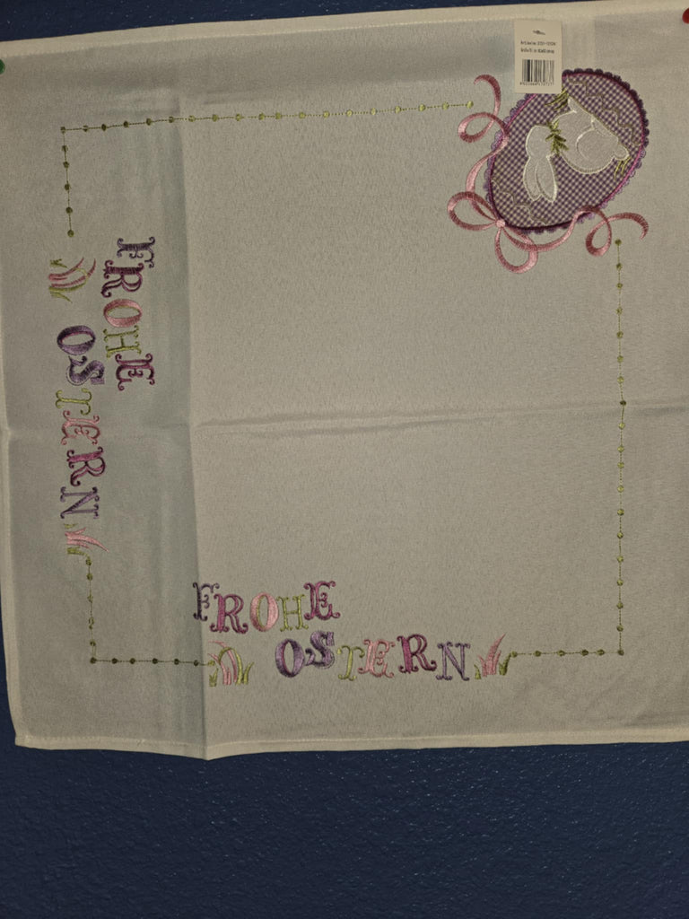 German Linen - Frohe Ostern / Happy Easter Purple Rabbit - 24 inch Square