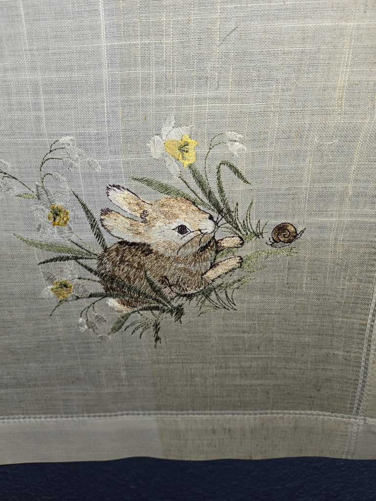 German Linen Table Topper Bunny with Snail - 34 Inch Snail